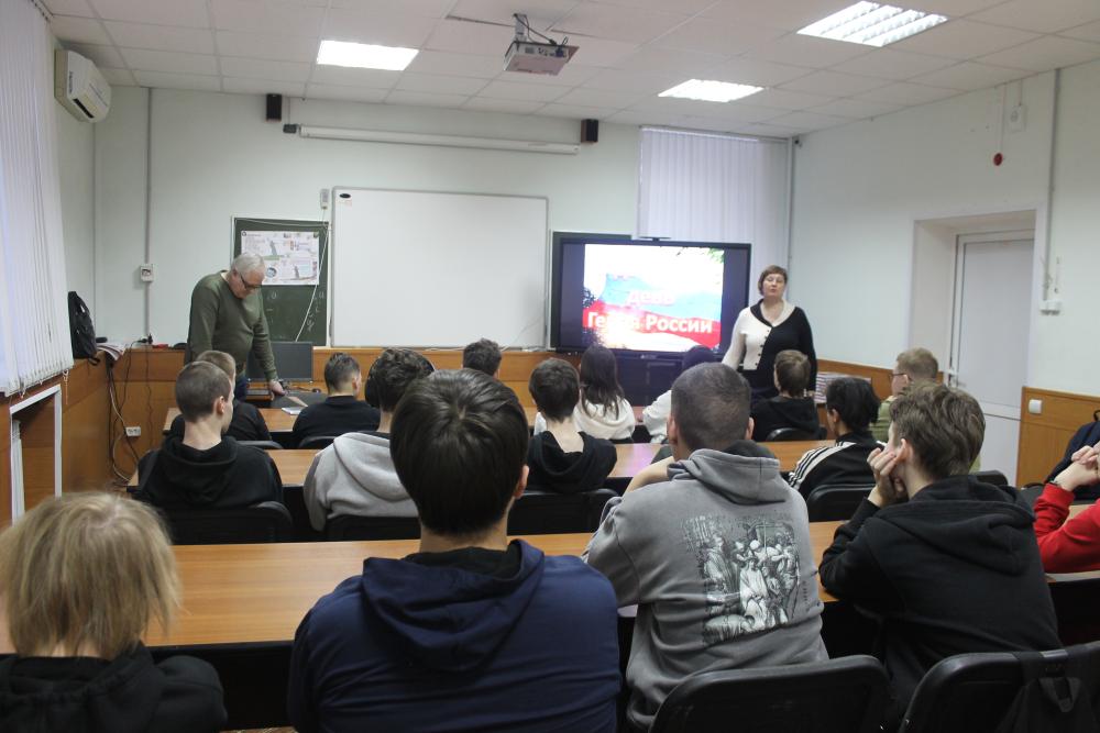 В ходе патриотического часа ребята вместе с социальным педагогом вспомнили, что праздник ведёт свою историю с 1769 года, когда императрица Екатерина II учредила высшую военную награду Российской империи — Императорский Военный орден Святого Великомученика и Победоносца Георгия, и установила День георгиевских кавалеров 26 ноября (9 декабря по новому стилю). После Октябрьской революции праздник и орден были упразднены, а традиция была возрождена лишь в 2007 году, когда Государственная Дума РФ установила 9 декабря как День Героев Отечества, тем самым восстановив историческую связь с днём чествования георгиевских кавалеров. В этот день чествуют не только кавалеров ордена Святого Георгия и Георгиевского креста, но и героев Советского Союза, героев Российской Федерации, а также кавалеров орденов Славы и «За службу Родине в Вооружённых Силах», отдавая дань памяти всем, кто проявил мужество и доблесть в служении стране.