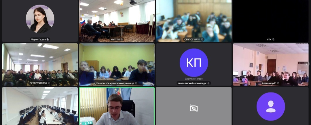 В рамках онлайн-встречи перед студентами выступила психолог ОБУЗ «Ивановский областной наркологический диспансер» Анна Хуторова, которая рассказала о последствиях употребления современных психоактивных веществ, никотинсодержащей продукции и вейпов.