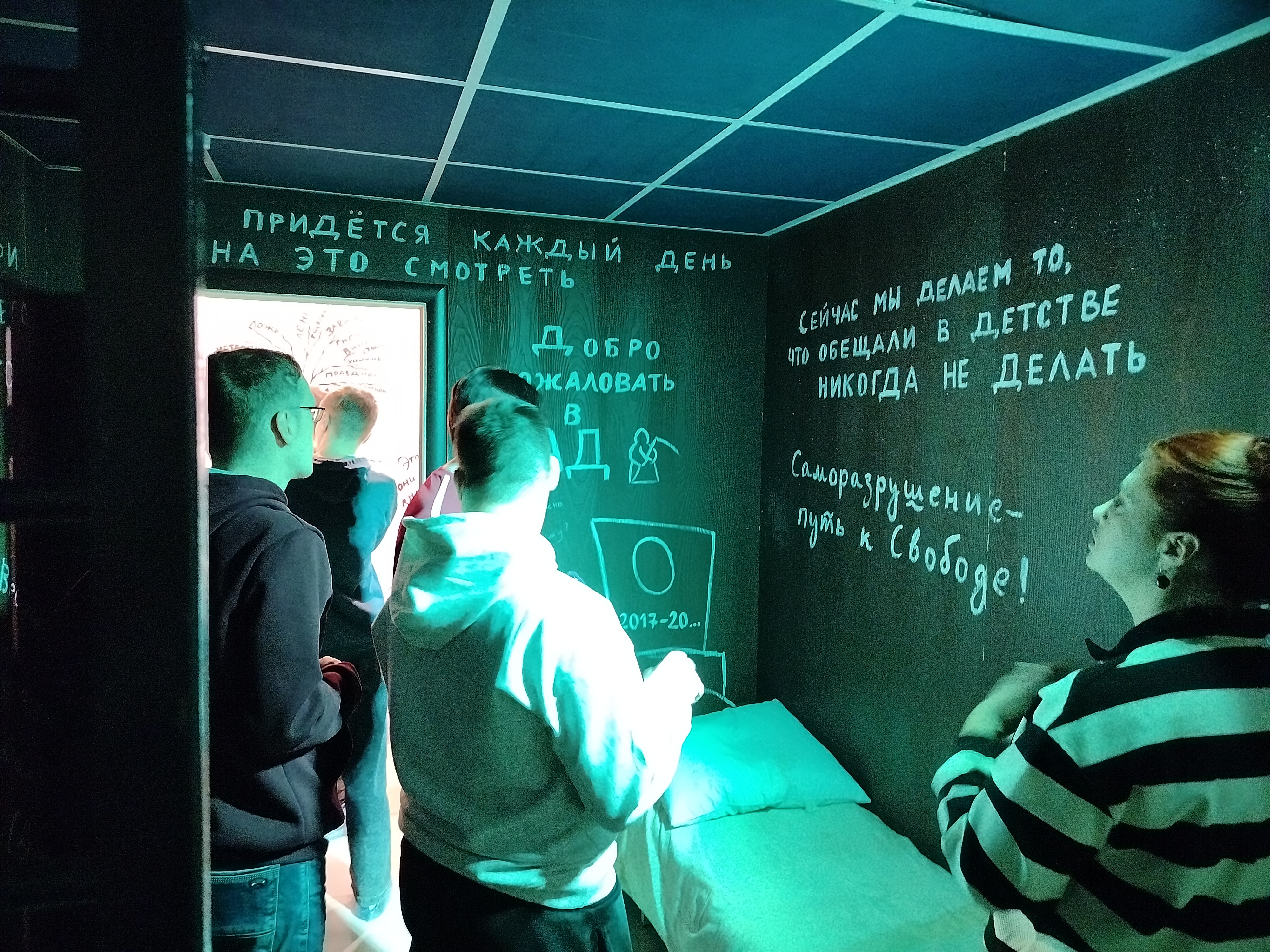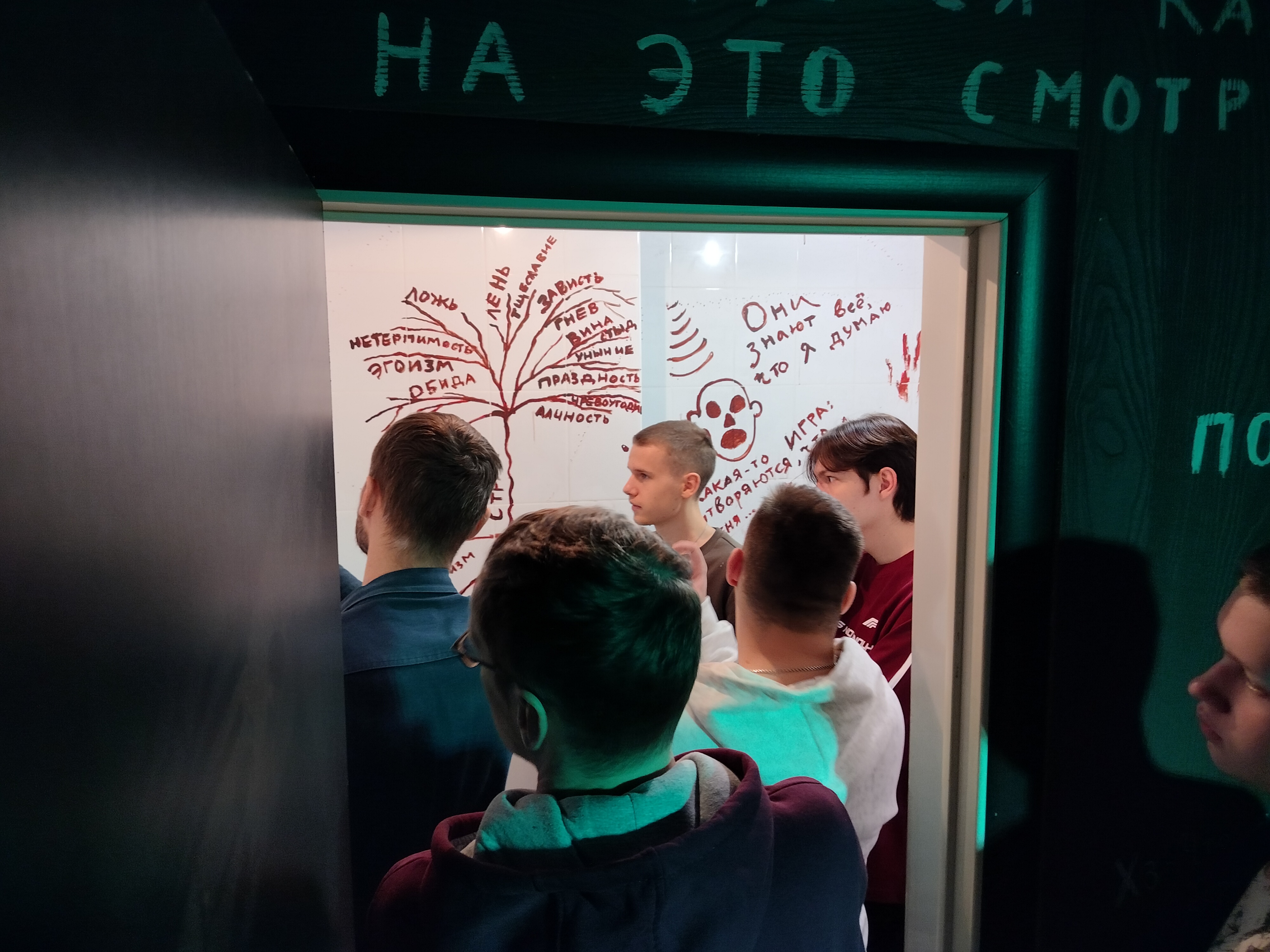 В рамках практического занятия студенты выполняли задания в квест-комнате, обсуждали свои впечатления, участвовали в тренинге по отработке стратегии поведения с незнакомыми и не внушающими доверия людьми. Полезной информацией было о «трёх точках опоры» каждого человека, рекомендации по выстраиванию алгоритмов поведения в сложных жизненных ситуациях без применения наркотических средств.