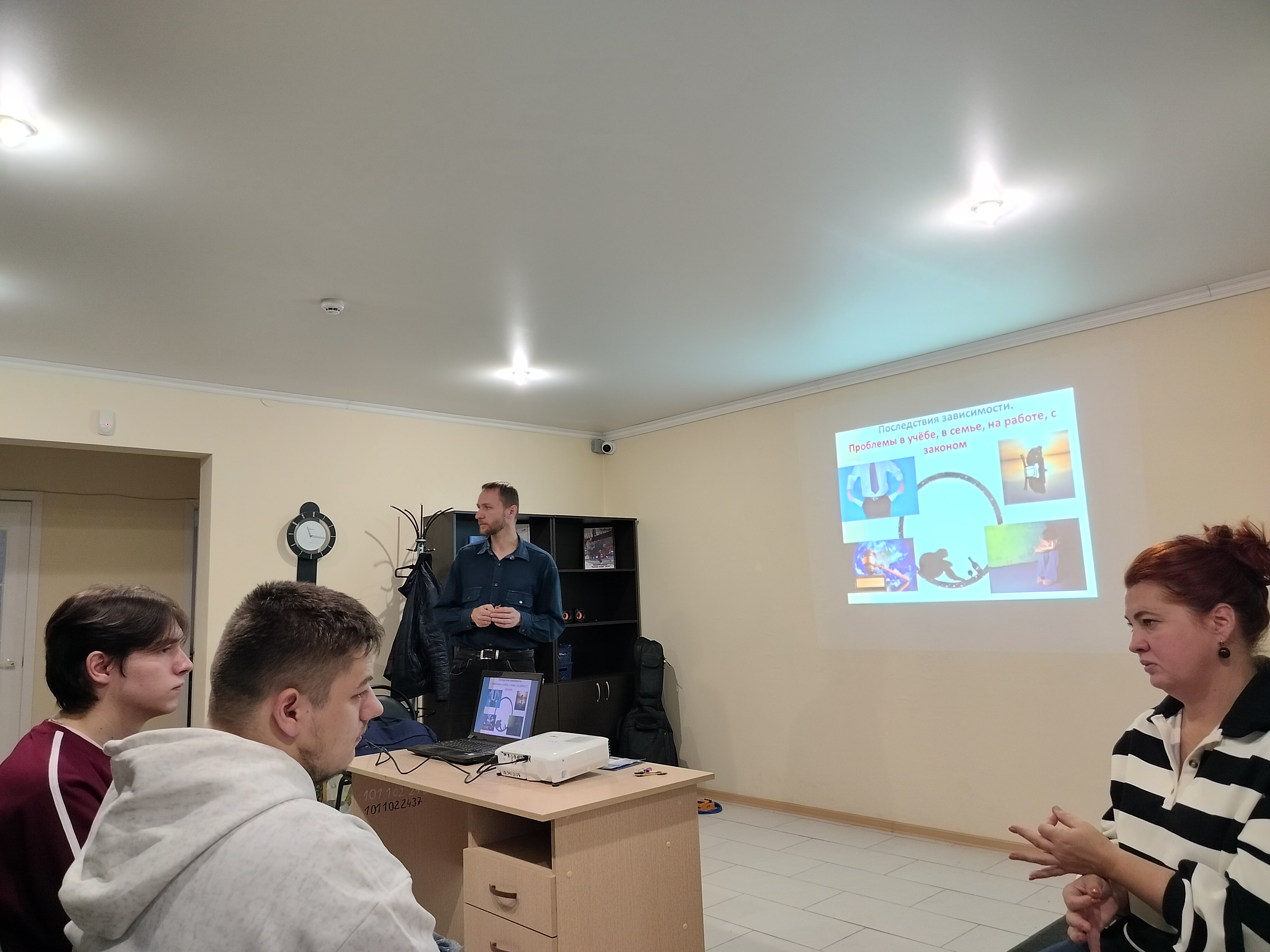 Врач-нарколог, Сергей Викторович Повасарис, в форме практической деятельности ознакомил студентов с проблемами наркомании и конкретного человека, ступившего на путь самоуничтожения, путём приёма наркотических средств. В интерактивной форме были продемонстрированы последствия неправильного, противоправного  выбора образа жизни, связанного с приёмом наркотиков.