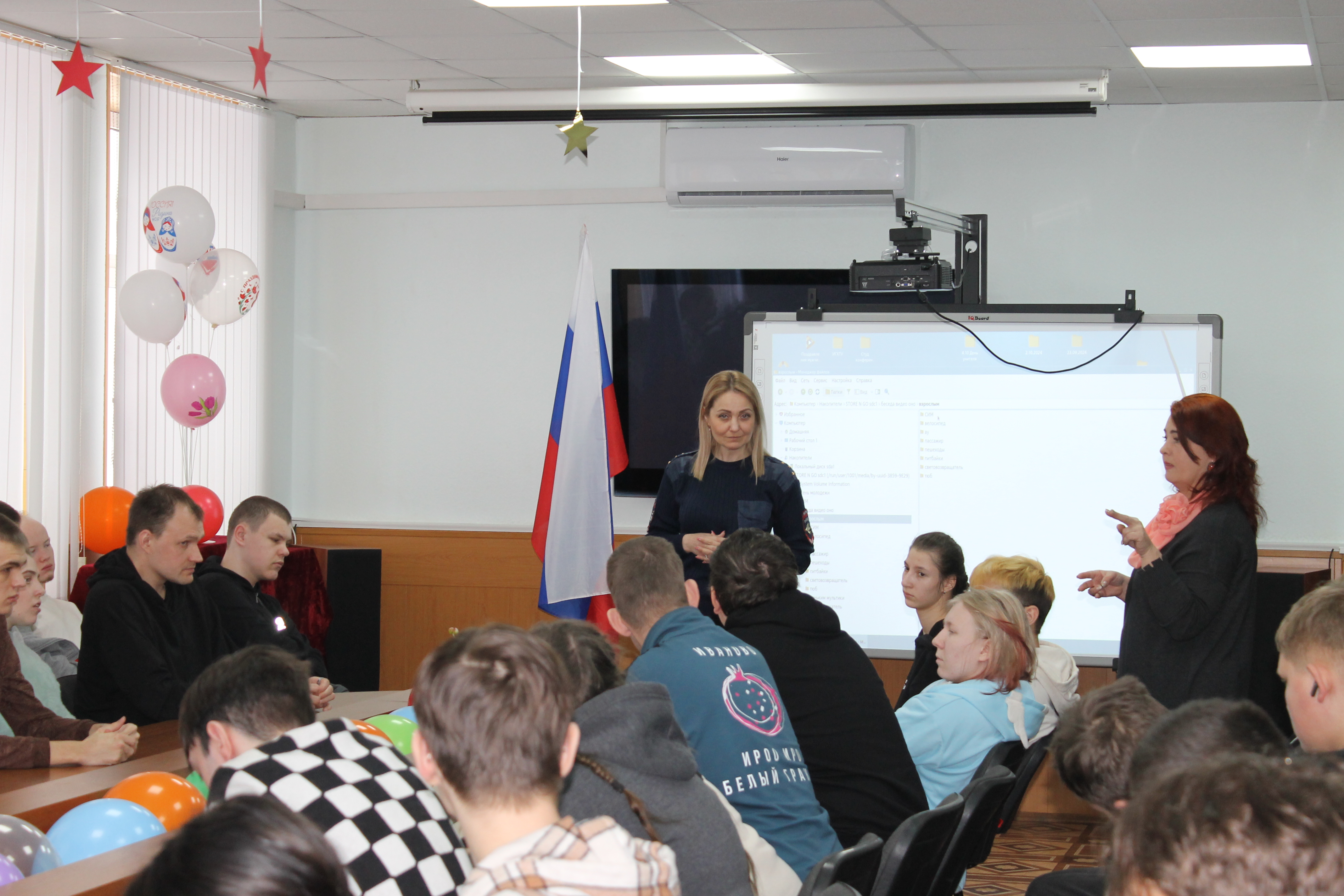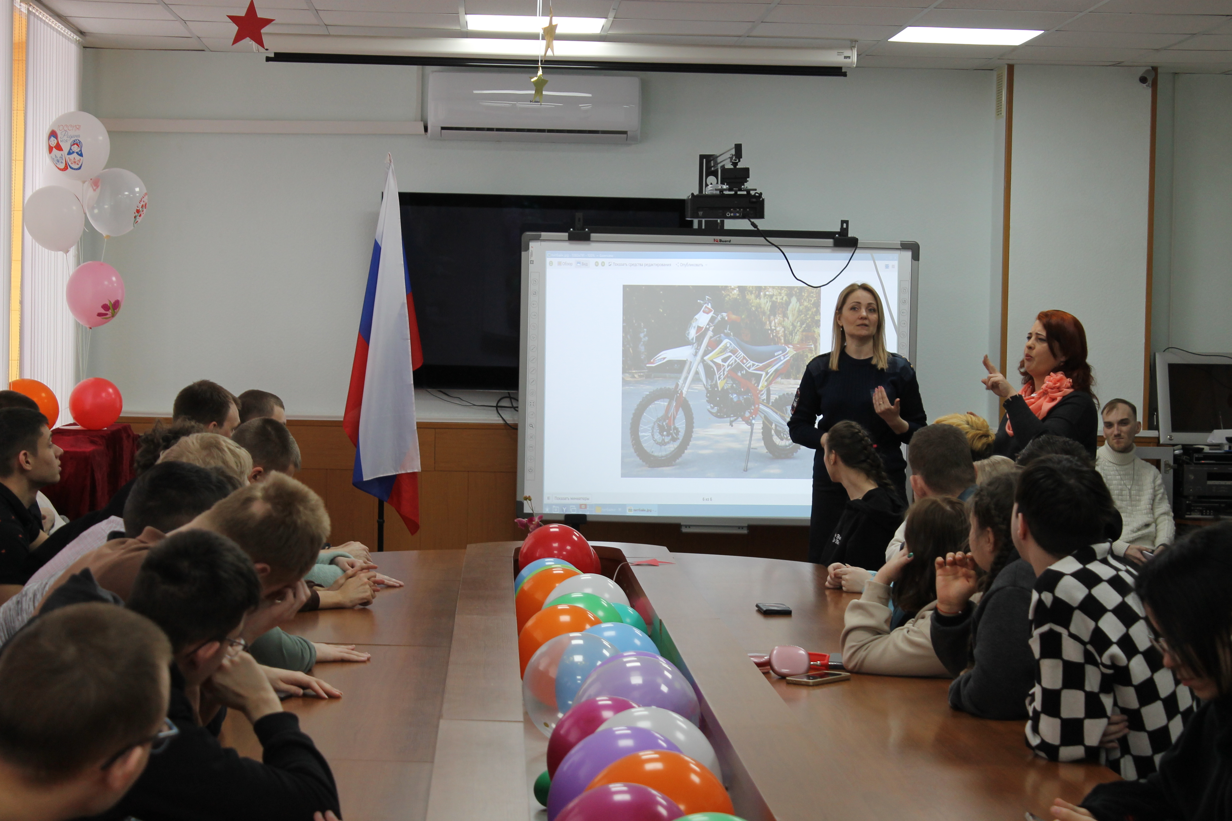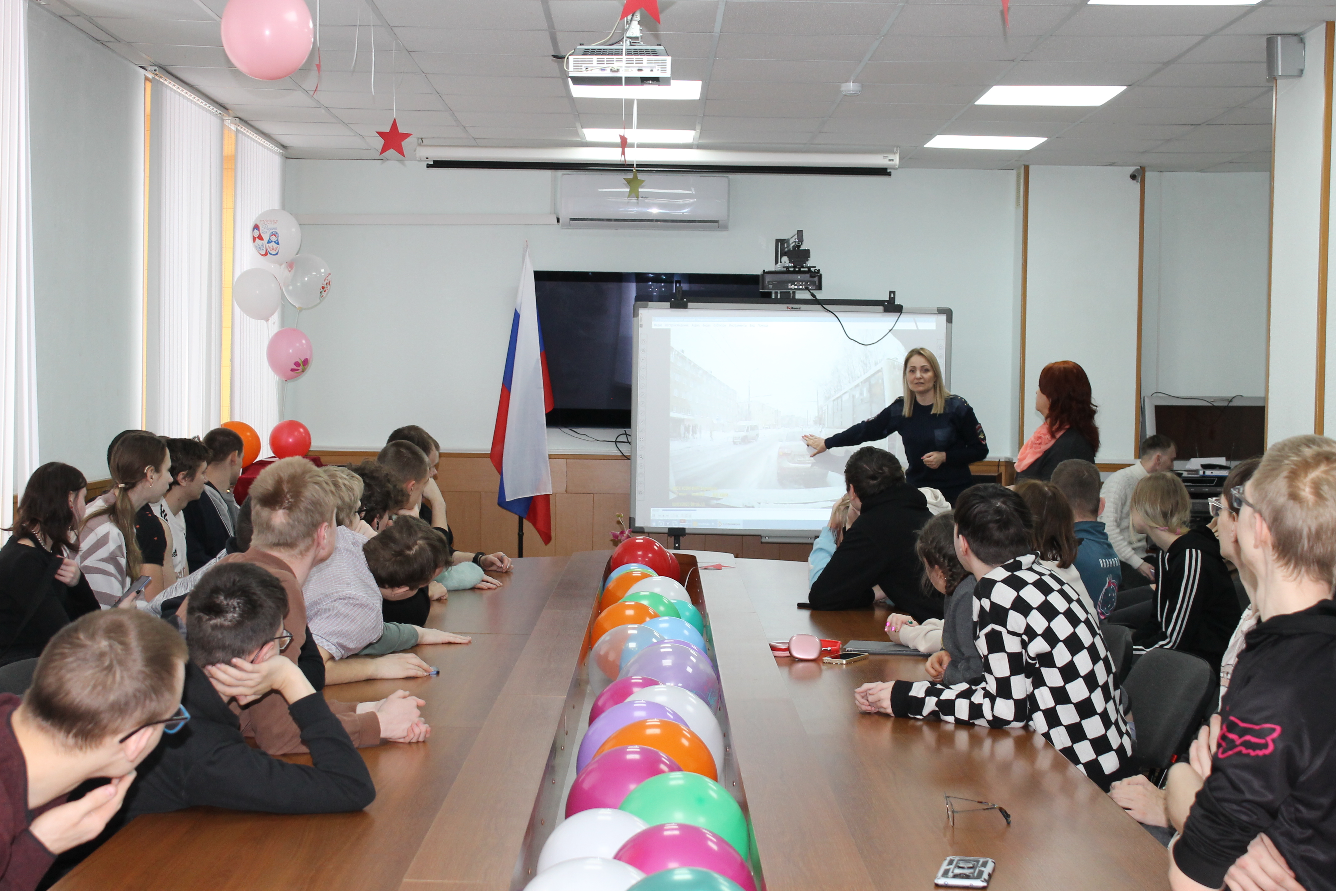Инспектор Госавтоинспекции рассказала студентам об административной ответственности несовершеннолетних за нарушение Правил дорожного движения, управление транспортными средствами водителями, не имеющими права управления, а также рассказала и о том, к каким печальным последствиям может привести несоблюдение дорожных законов, приводя примеры из своей практики. Особое внимание в рамках диалога со студентами Елена Викторовна уделила информированию о недопустимости использования мобильного телефона во время участия в дорожном движении, как отвлекающего фактора, который может помешать, быстро среагировать на изменение дорожной ситуации при переходе проезжей части дороги и при управлении транспортным средством, о мерах безопасности при управлении мото- и велотранспортом, а также другими средствами передвижения.