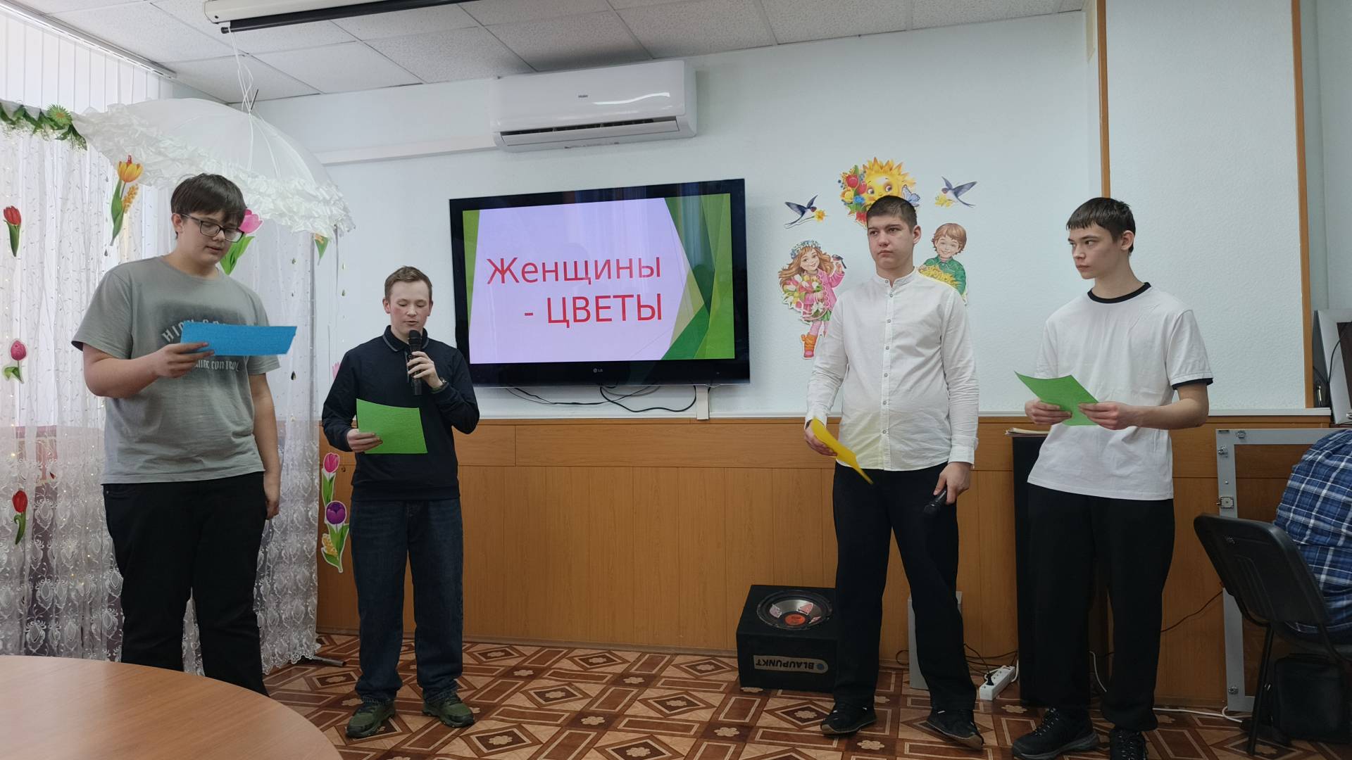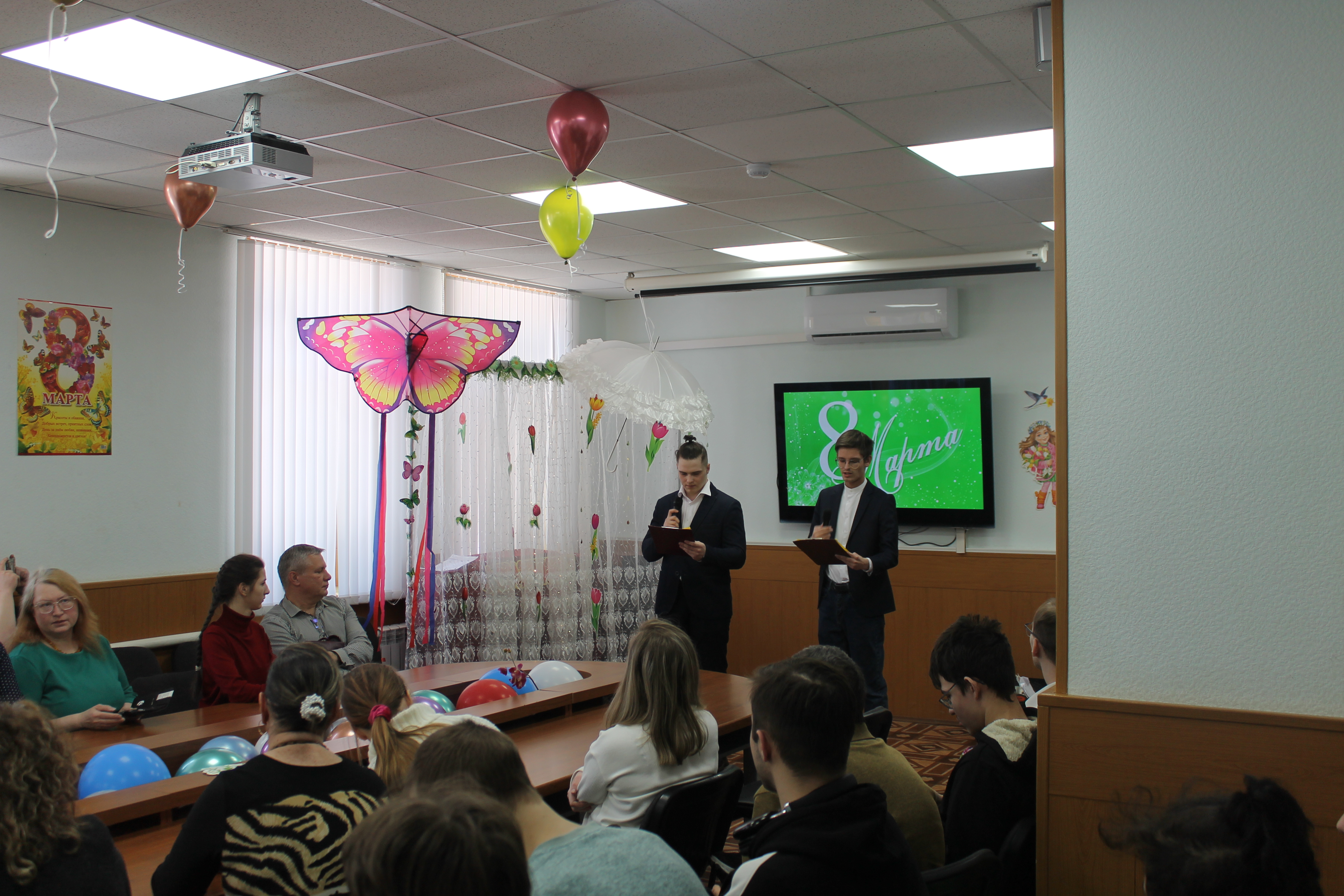 Ведущие праздника Алтух Михаил и Петухов Андрей напомнили зрителям, что 8 марта — это праздник весны, любви и красоты, который объединяет всех: мам, бабушек, сестер, подруг и, конечно же, любимых сотрудниц и студенток образовательного учреждения. Они не раз говорили о том, что женщина — это главное чудо света, желали счастья, здоровья, любви и исполнения самых заветных желаний.