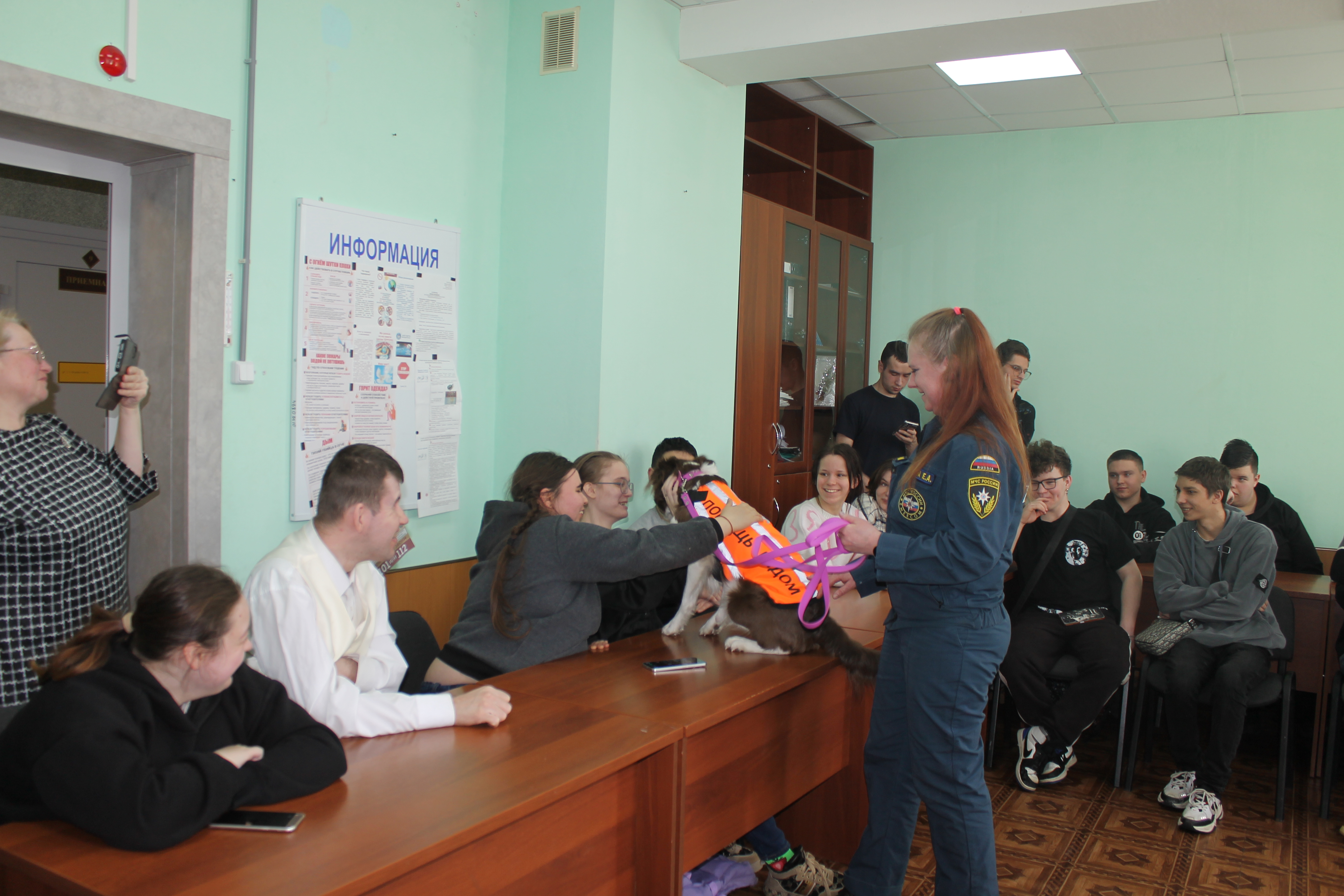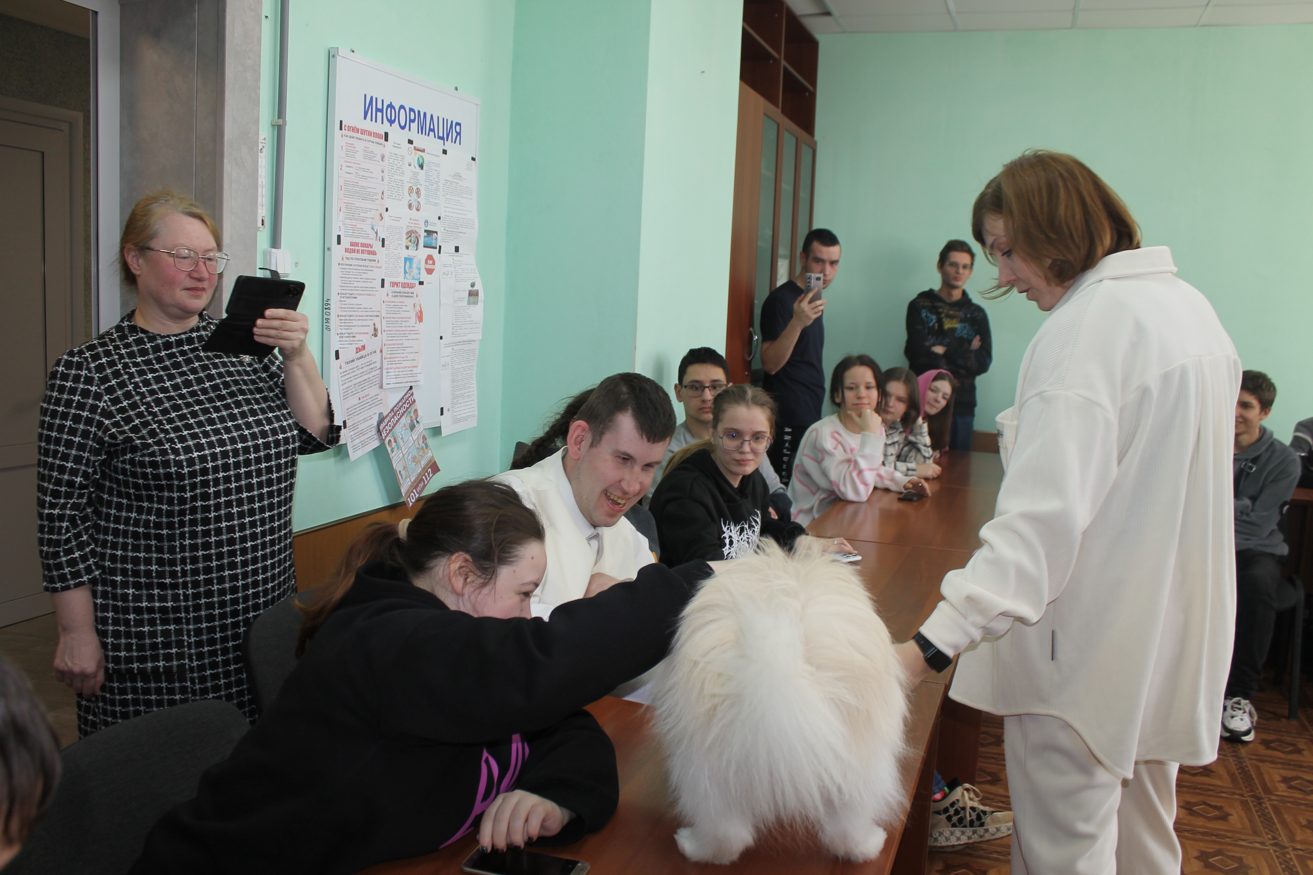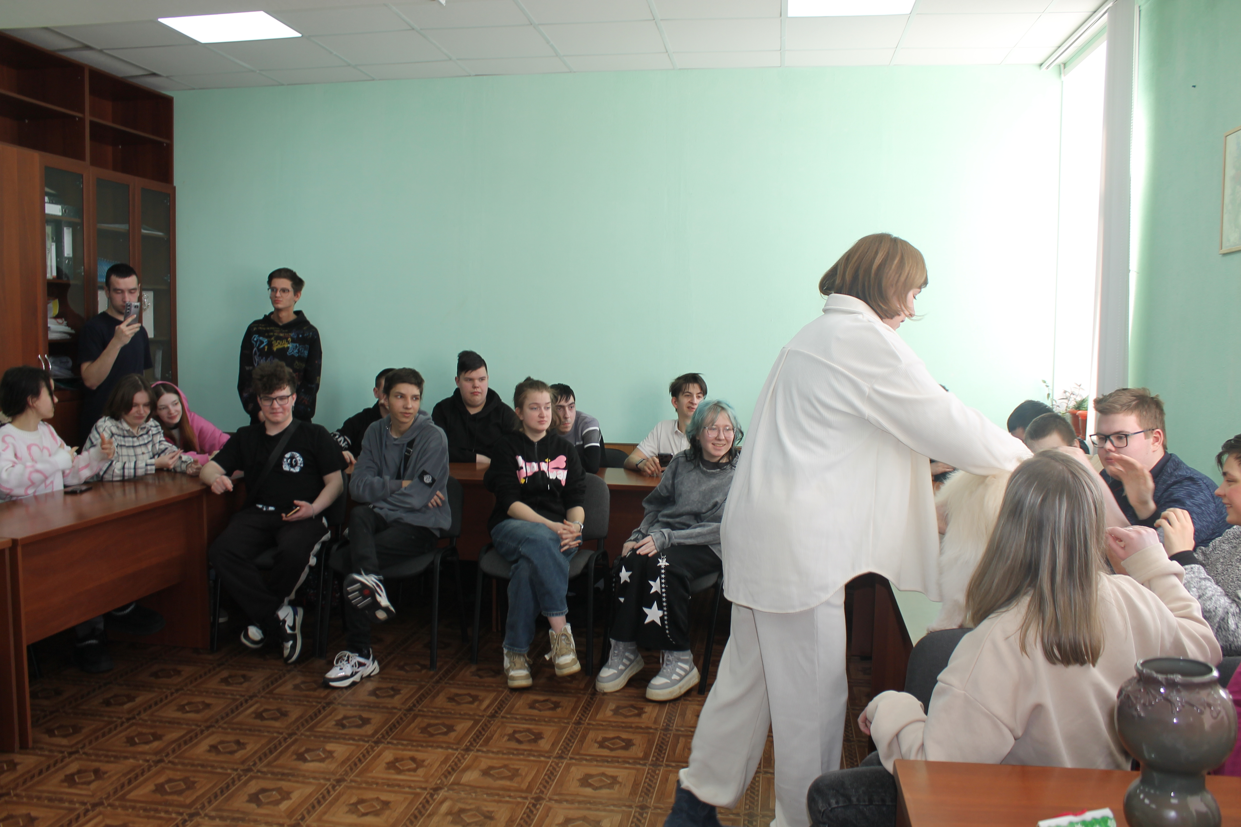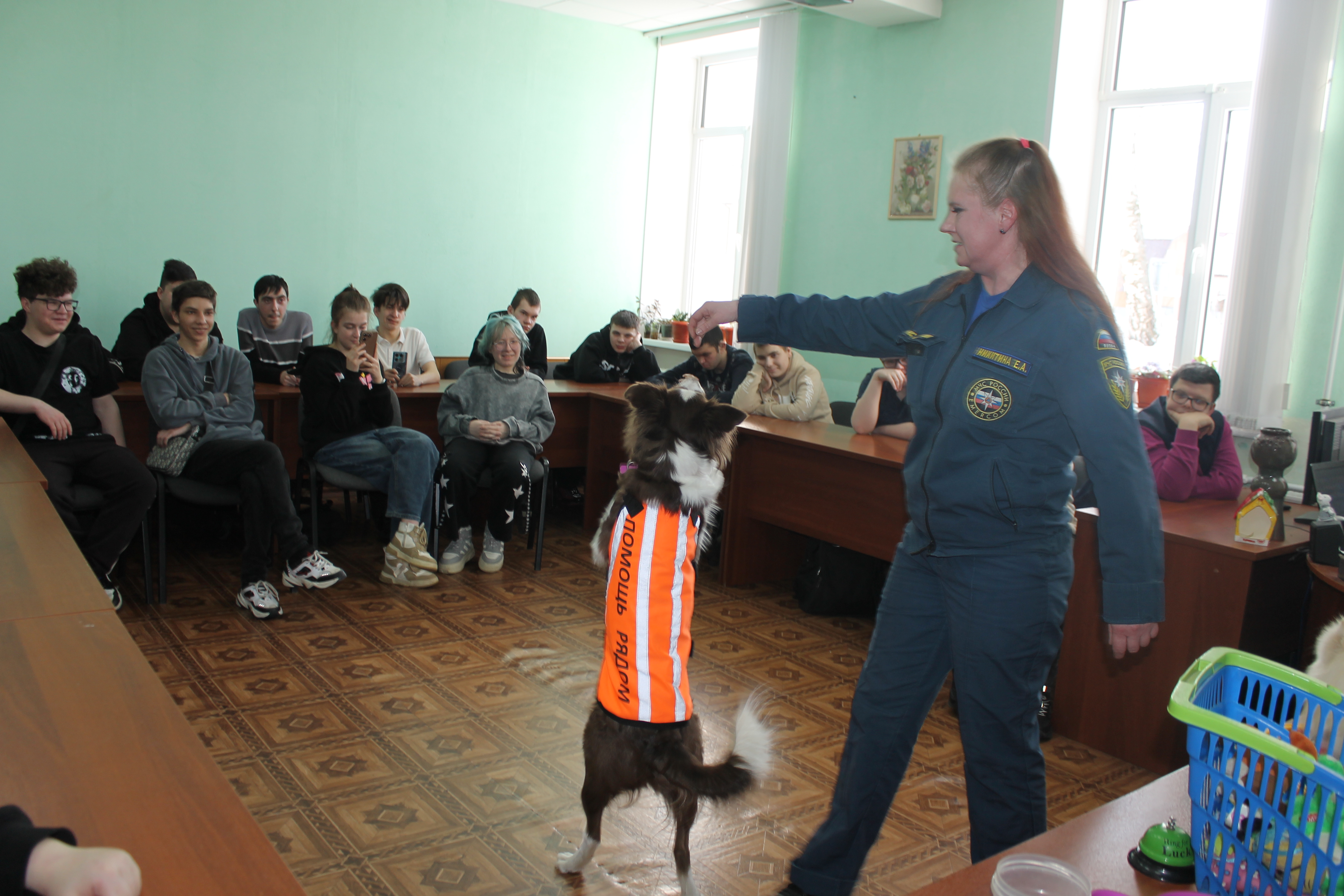 5 марта студенты учебных групп 1.88, 2.85 и 3.82 стали участниками пет-терапии. В гостях у них были кинологи: