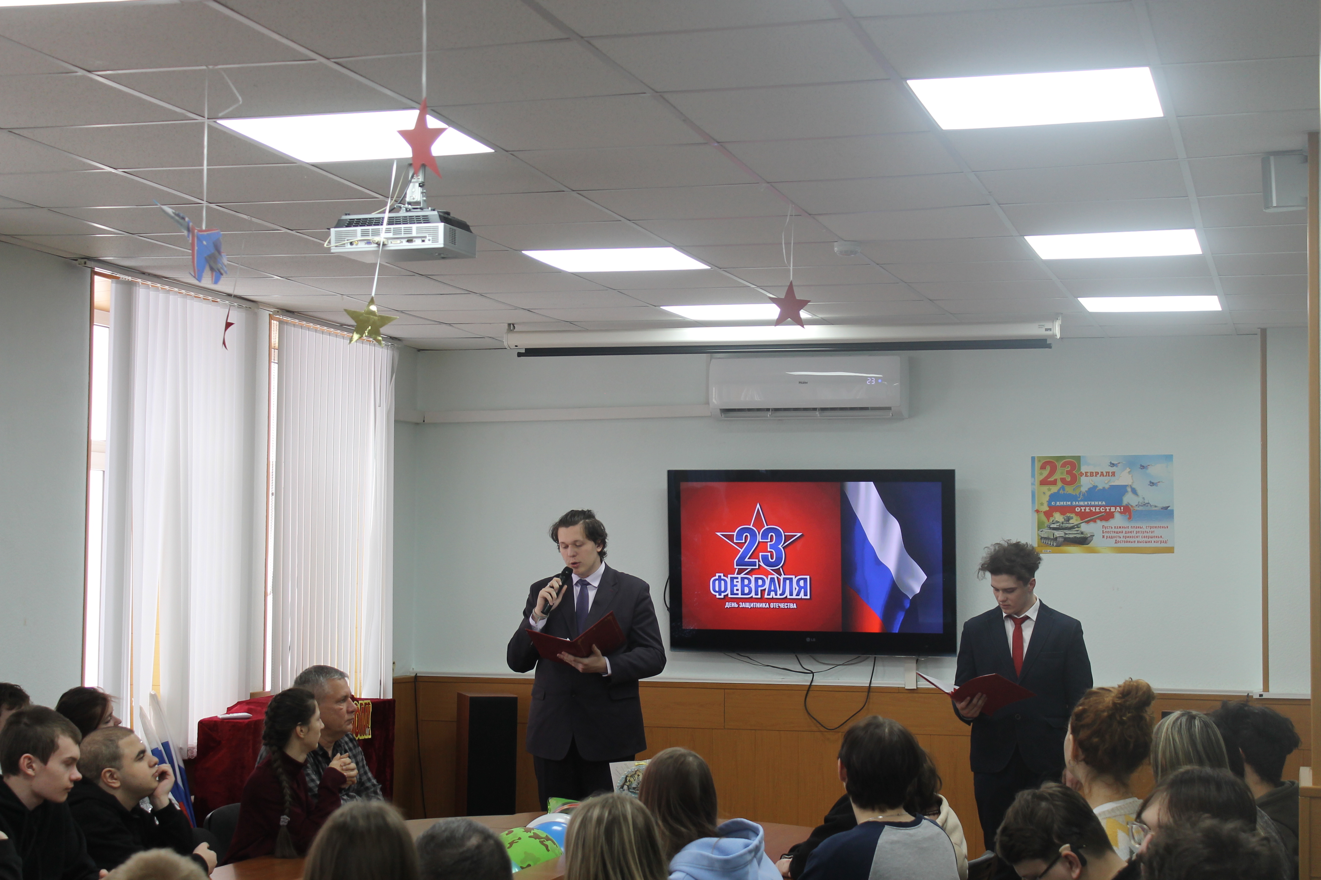 В преддверии праздника 19 февраля в конференц-зале Ивановского радиотехнического техникума-интерната состоялся торжественный концерт, посвящённый Дню защитника Отечества. Мероприятие собрало студентов, преподавателей и гостей, чтобы вместе поздравить мужскую половину человечества с этим значимым днём.