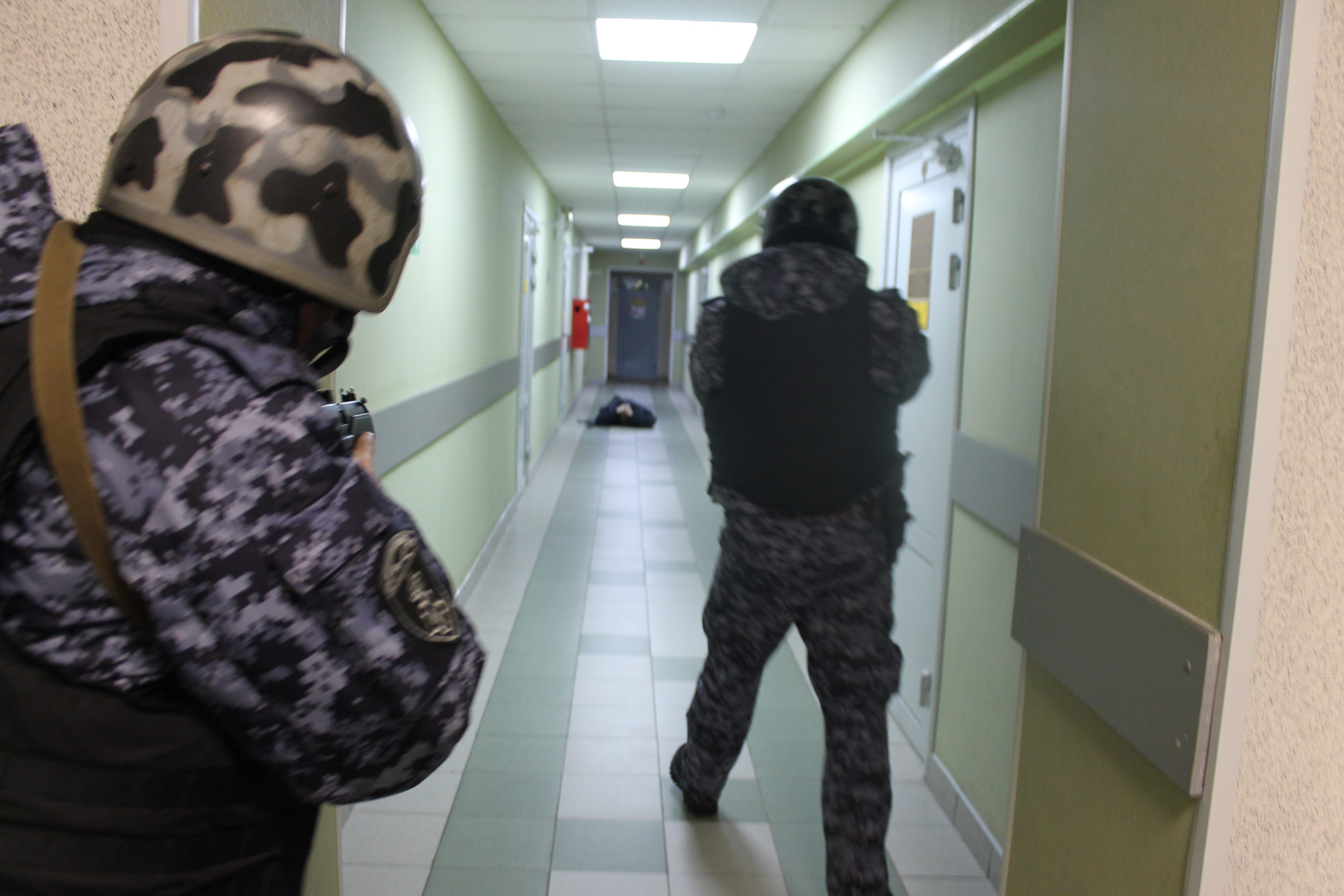 Были отработаны действия руководства, персонала, обучающихся, подразделения войск национальной гвардии Российской Федерации при проникновении террориста в здание образовательного учреждения.