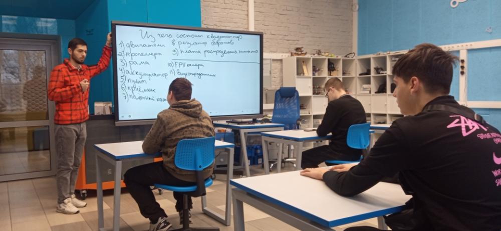 Теоретический блок в работе секций БПЛА и 3-D моделирования: «Из чего состоит квадрокоптер? Важность каждой детали. Возможности оборудования» и «Устройство и алгоритм действия лазерного принтера. Печать новогодних игрушек».