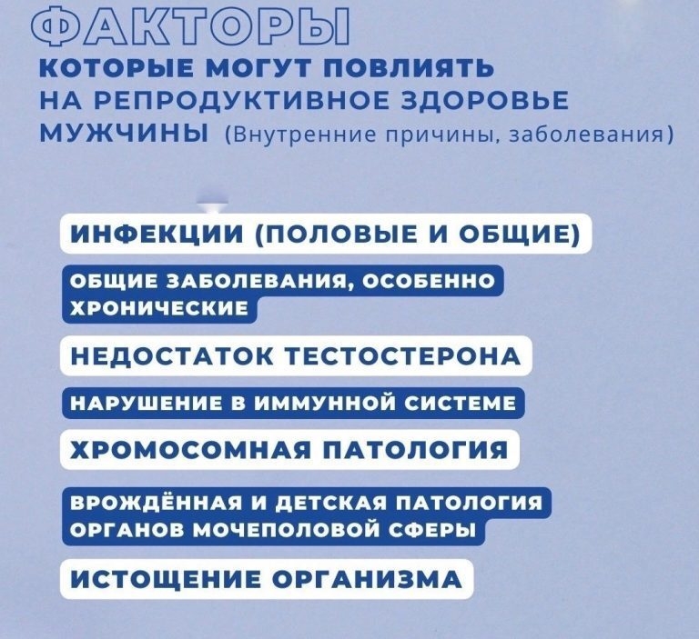 Проходите репродуктивную диспансеризацию если вам 18-49 лет. Первый этап для мужчин включает осмотр врачом-урологом или врачом-хирургом. Второй этап диспансеризации проводится по показаниям, объем обследований определяет врач-уролог по итогам первого этапа. На втором этапе проводится спермограмма, микроскопическое исследование микрофлоры или лабораторные исследования для выявления возбудителей инфекционных заболеваний органов малого таза методом ПЦР, УЗИ предстательной железы и органов мошонки, а также консультация врача-уролога.