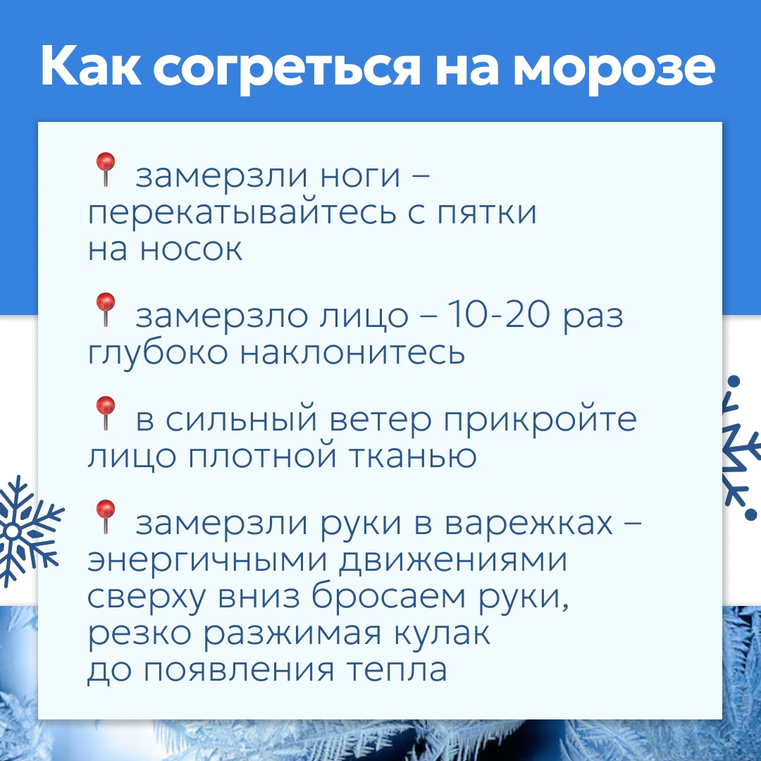 Смотрите в наших карточках простые правила, которые позволят пережить холода без вреда для здоровья.