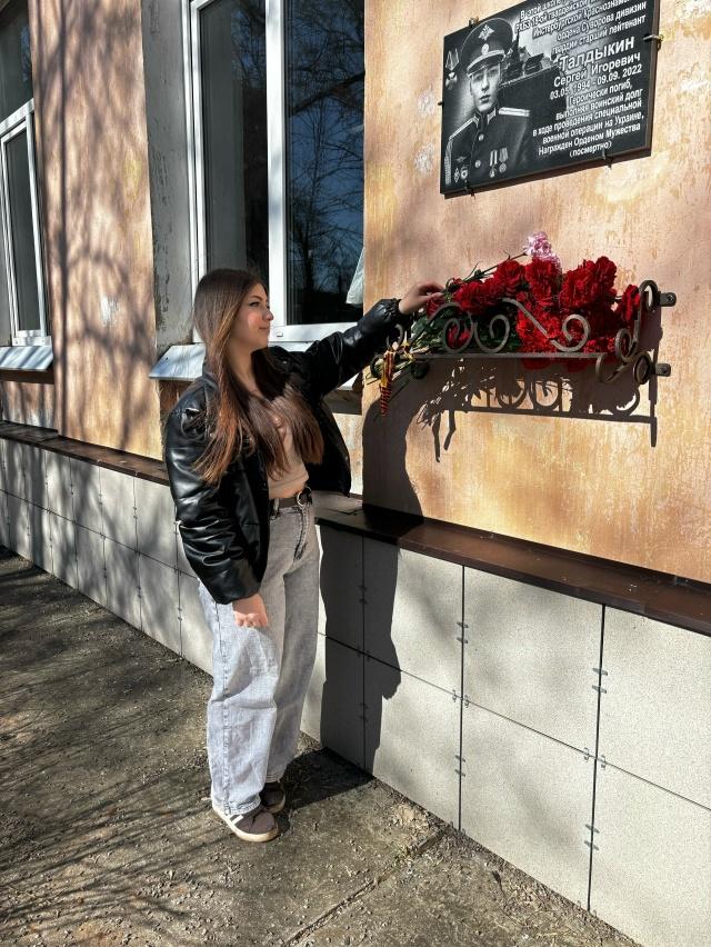 Ребята посетили мемориальную доску, посвященную Талдыкину Сергею Игоревичу. В знак признательности и благодарности - возложили к мемориальной доске цветы.