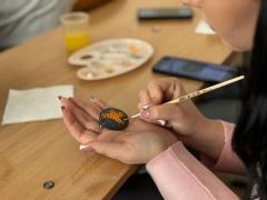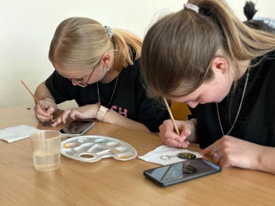 В рамках реализации программы «Пушкинская карта» для ребят был организован мастер-класс, посвящённый росписи броши с изображением нежной веточки мимозы.